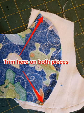 the fabric together and sew 1/8 inch along the edges on the curved side. |