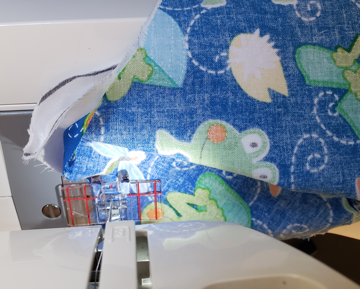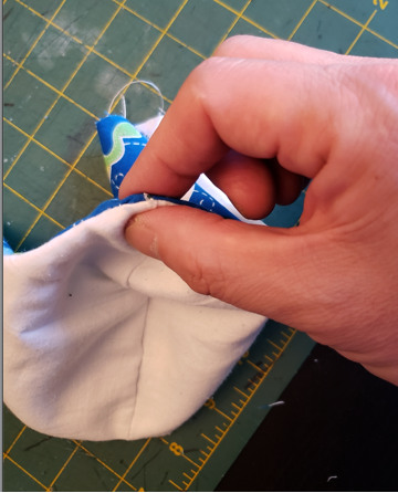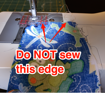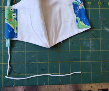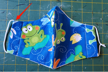 thread, DO NOT sew the edge. Sew down the other side of the mask. |